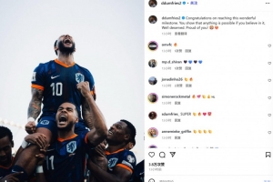 邓弗里斯也在赛后通过社媒晒出了德佩的庆祝照,并配文:“祝贺达成这一非凡的里程碑。你证明了,只要坚信自己,一切皆有可能。这是你应得的,为你感到骄傲!🦁🧡”
